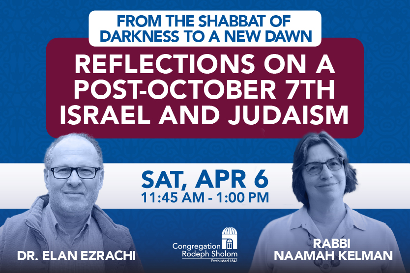 From the Shabbat of Darkness to a New Dawn: Reflections on a Post-October 7th Israel and Judaism with Rabbi Naamah Kelman and Dr. Elan Ezrachi